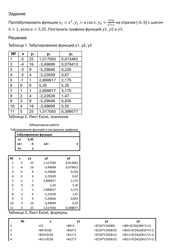 Протабулировать функции на отрезке с шагом. Построить графики функций.